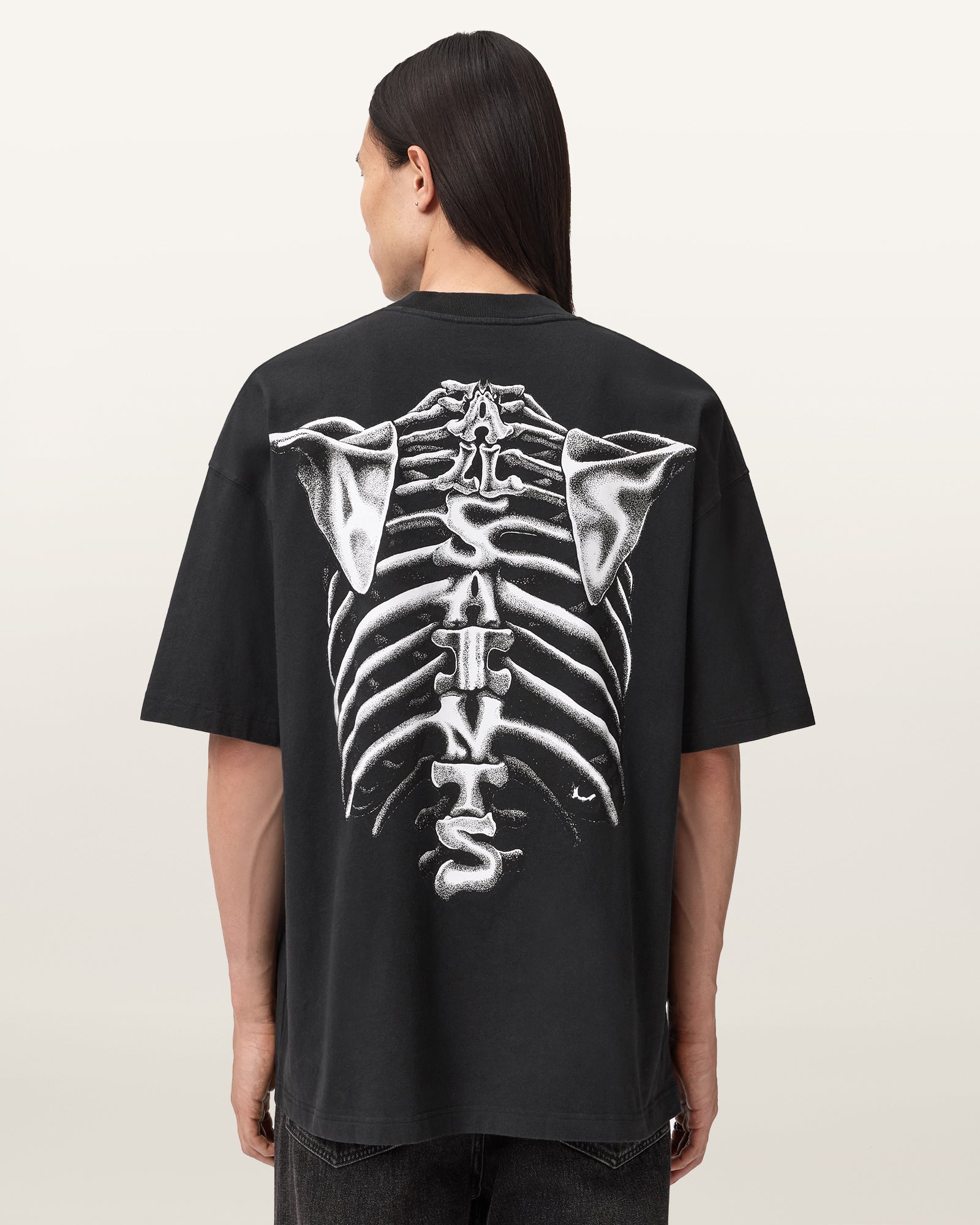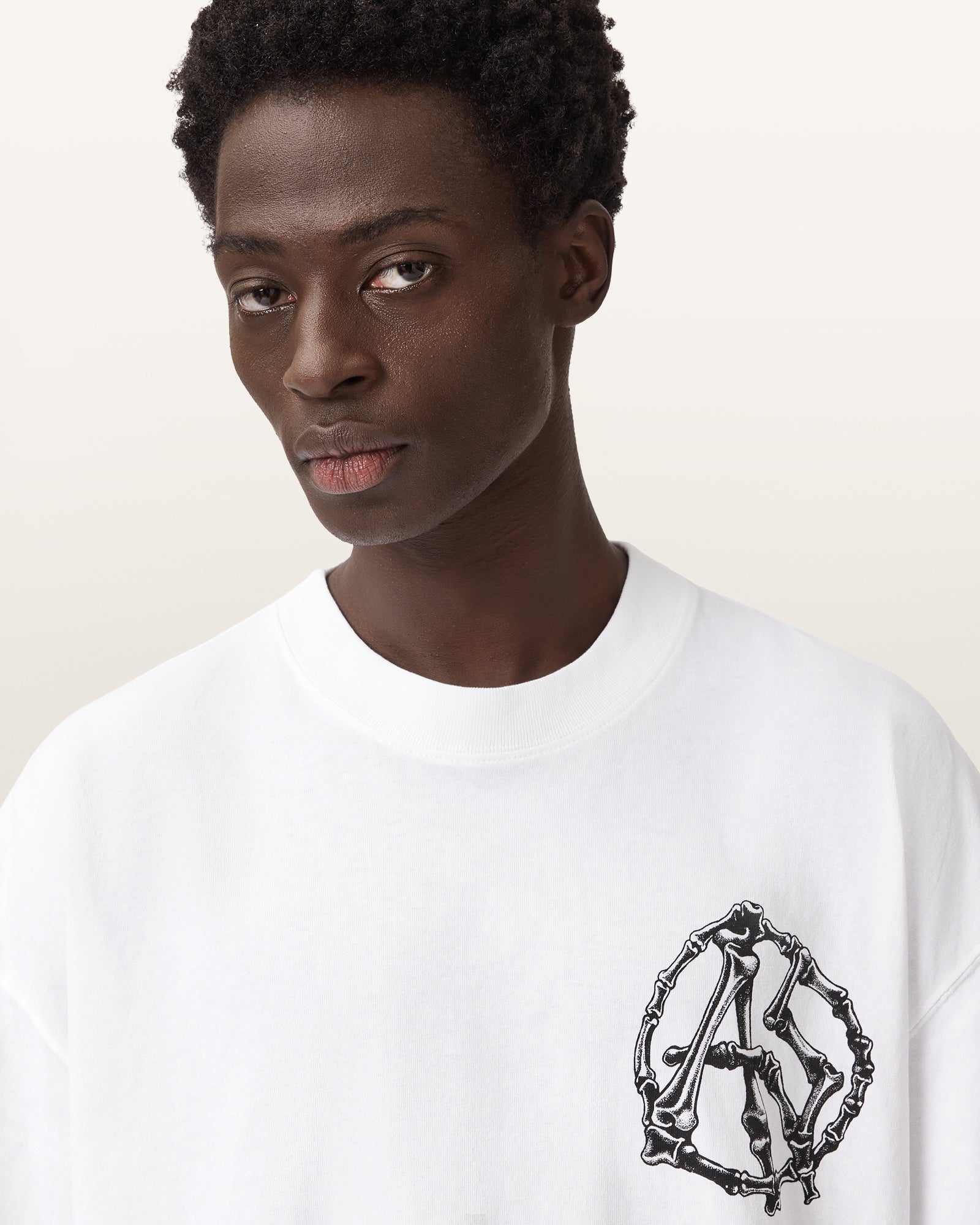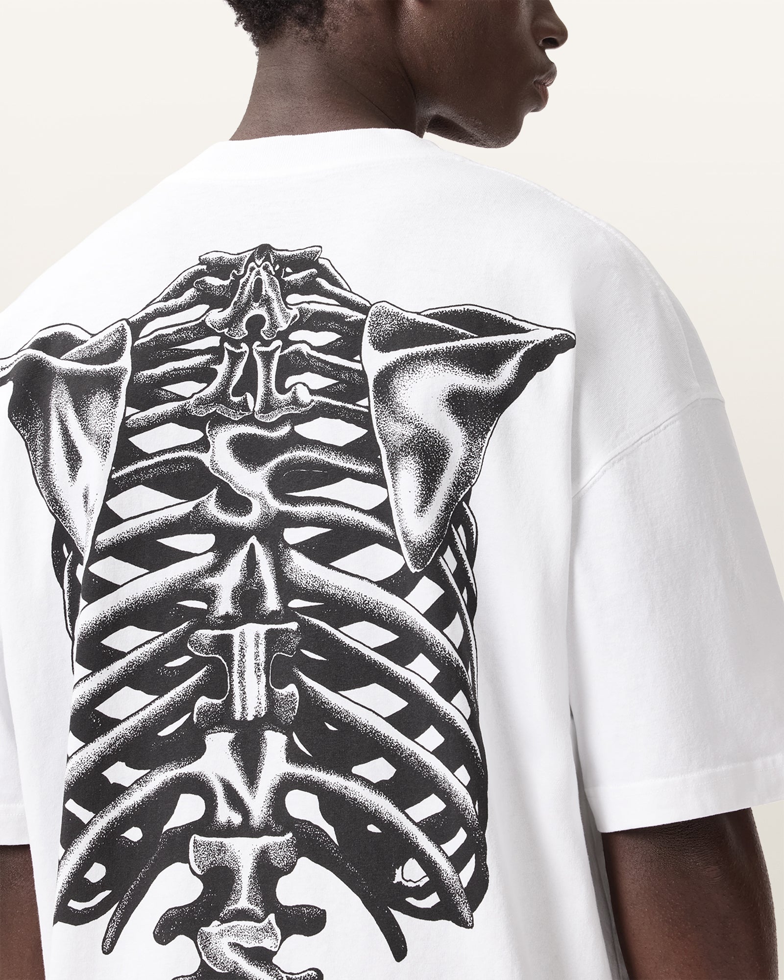 Hand drawn anatomical graphic screenprinted with AllSaints branding