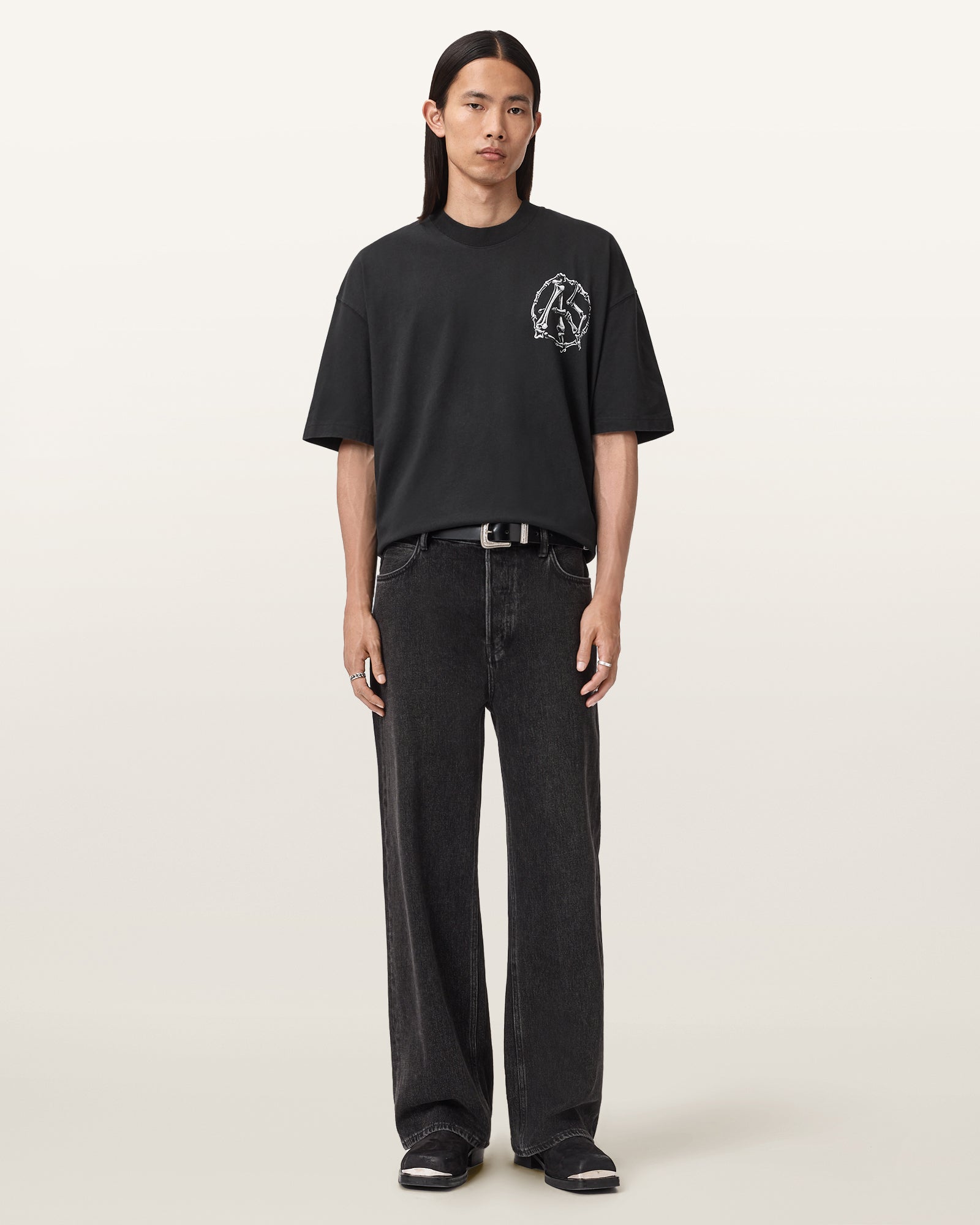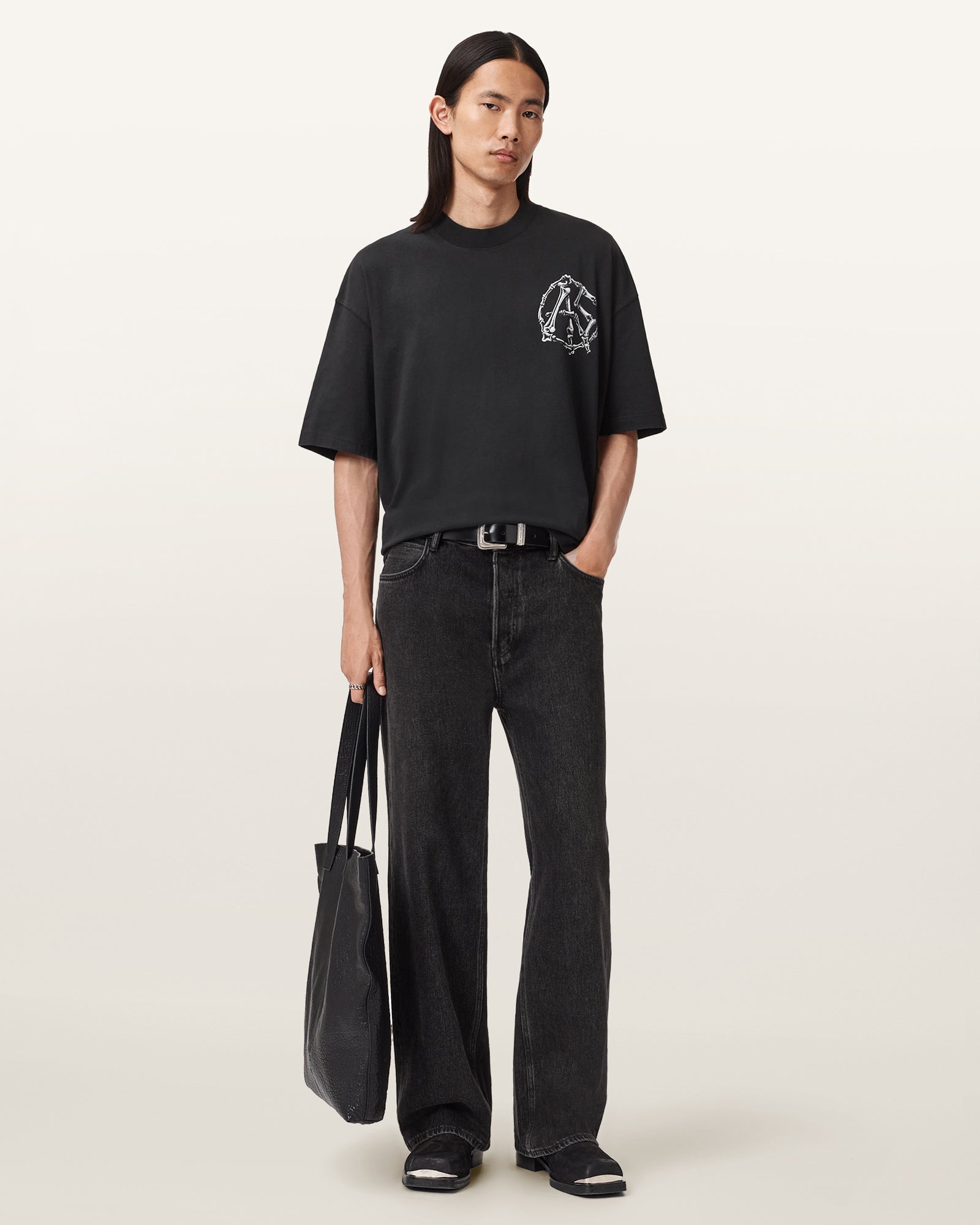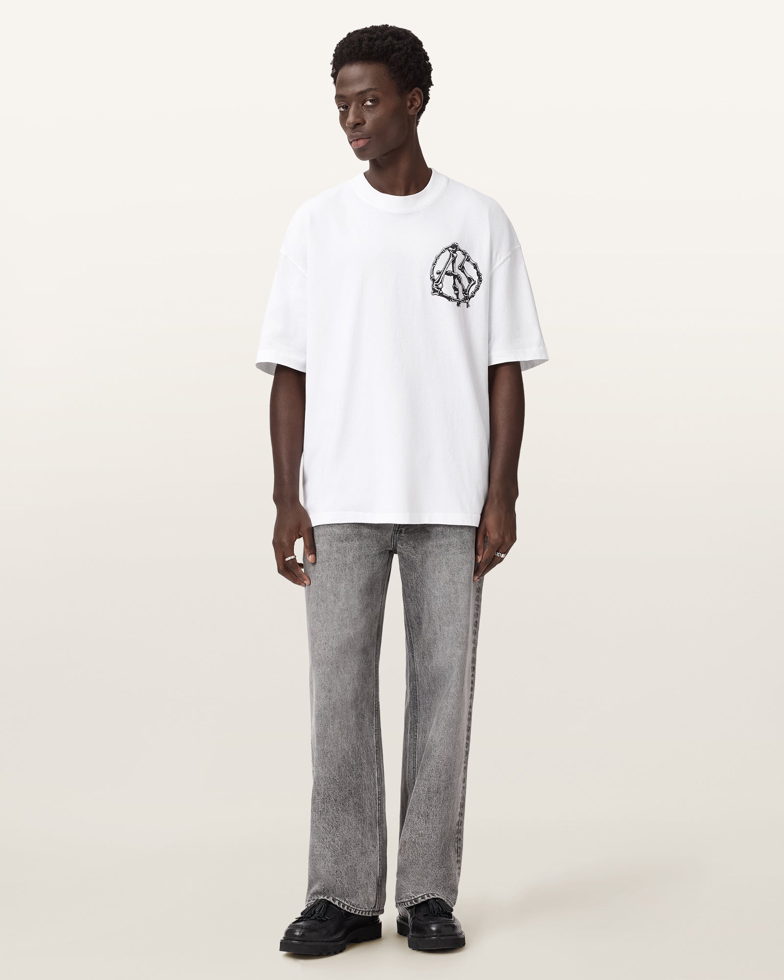 Hand drawn anatomical graphic screenprinted with AllSaints branding