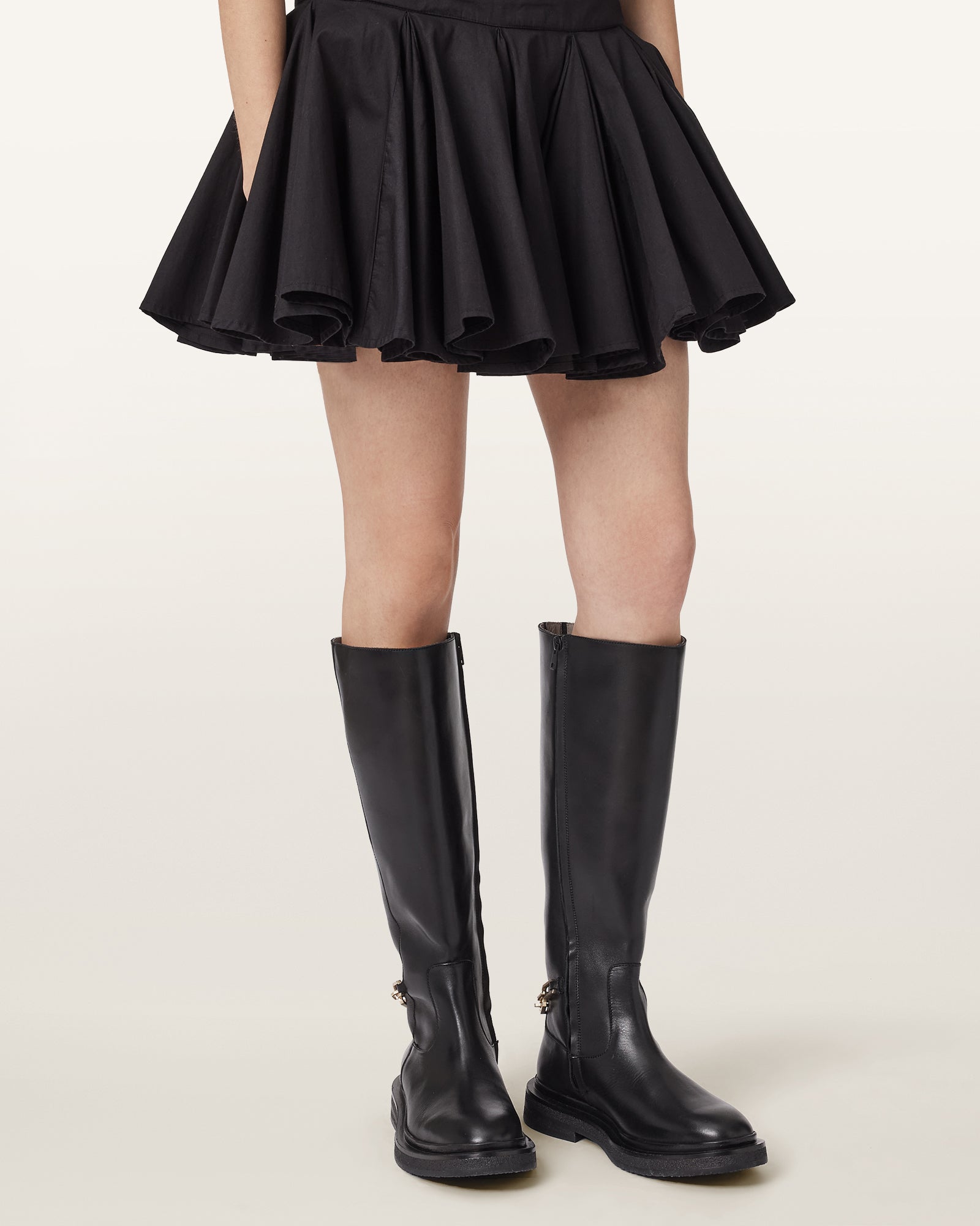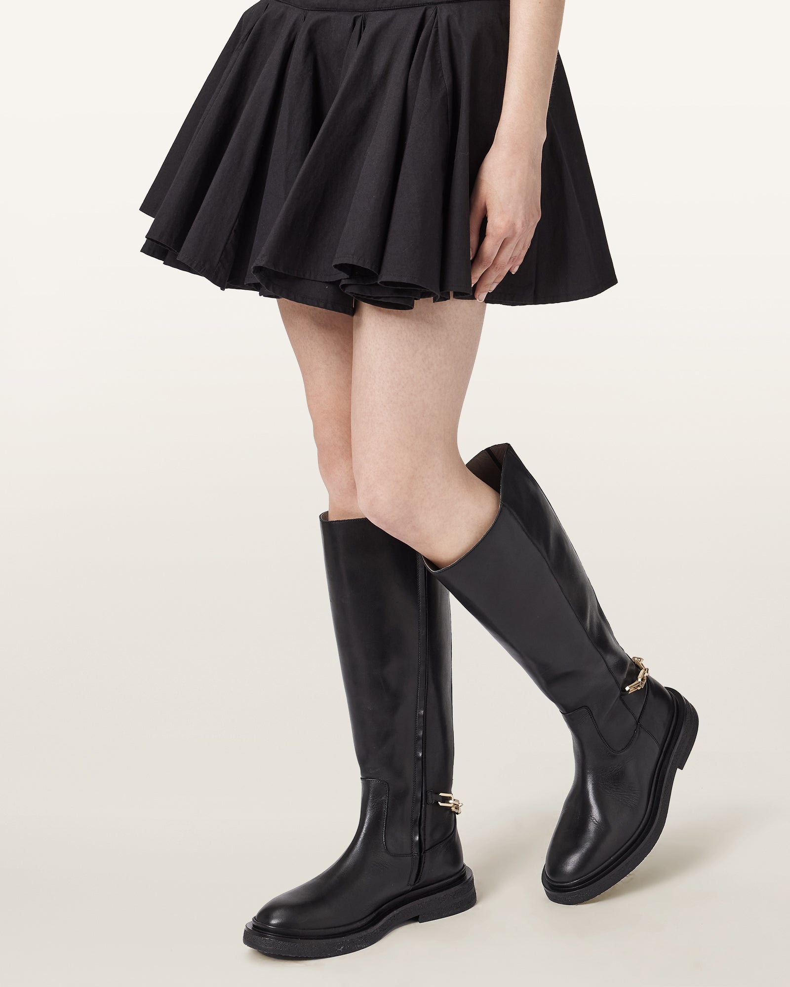 Who says minimal can't be loud? These knee high boots are a true statement, wear them to toughen up our mini dresses or highlight your leather jacket.